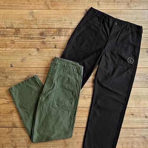ミリタリーパンツの中でもアイコン的存在のベイカーパンツをベースに穿きやすいサイジングに仕上げたオリジナルのファティーグパンツに、「PEACE」マークのスタッズワークを施しました