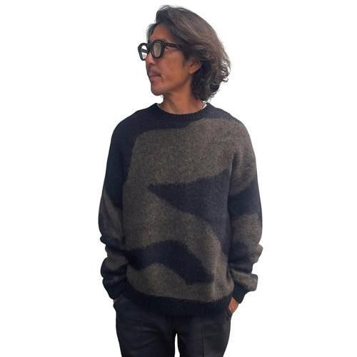 MARBLE MOHAIR KNIT CREW BLACK/OLIVE