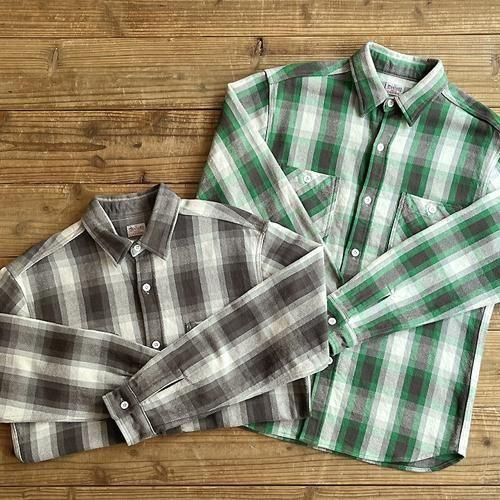 オンブレーのような雰囲気のブロックチェック柄が特徴で、長年着込んで退色したような柔らかい色合いに仕上げました