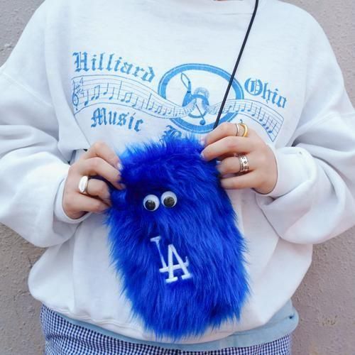 ふわふわのファー素材にMLBチームロゴをあしらった、遊び心たっぷりのミニショルダーバッグ