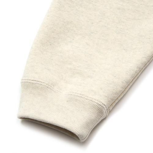 表糸に米綿の14/-空紡糸、裏糸を3トビにし、表の縦目を立たせる事でアメリカンヴィンテージを再現したヘビー裏毛を採用