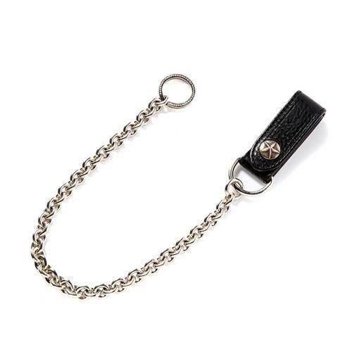 シルバーのスターコンチョスナップボタンを使用し、作製されたベルト通しタイプのウォレットチェーン